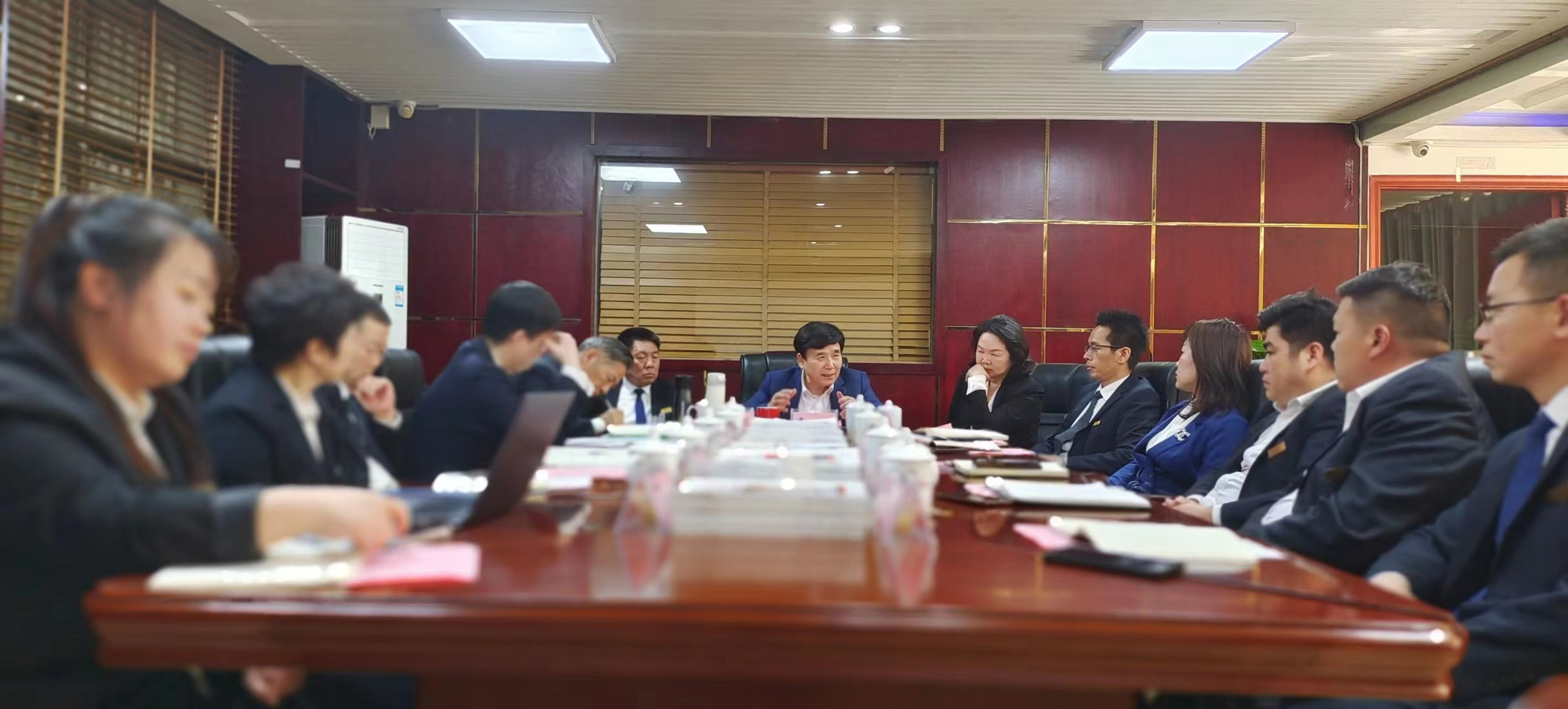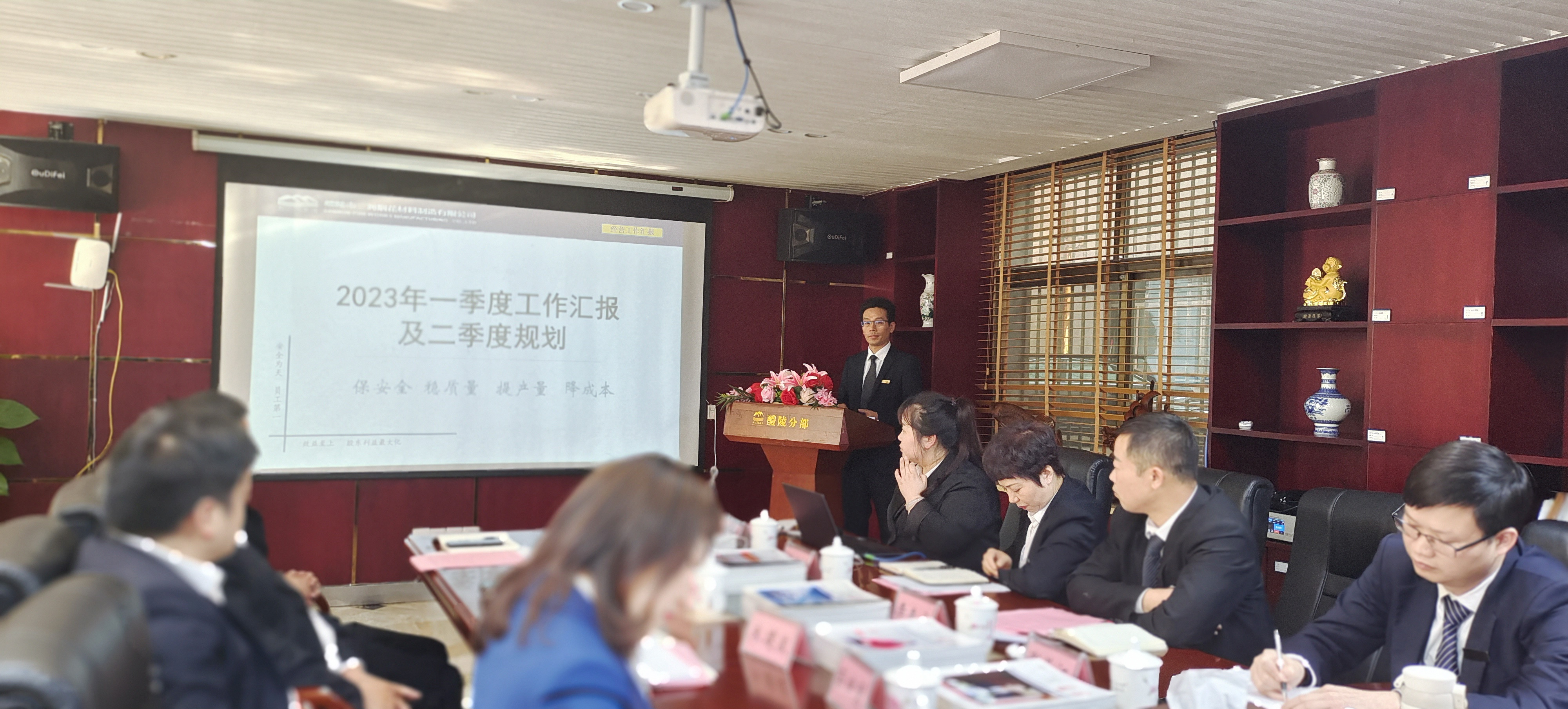 4月8日15:00时,继集团总裁办、餐饮板块、矿业板块先后召开季度绩效考评·考核会议之后,集团烟材、物流板块在醴陵分部第一会议室召开2023年一季度绩效考评考核会议。集团党委书记、董事长出席会议并作动员讲话,集团副总裁肖玲兰,助理总裁瞿孝军、周嘉豪,集团财务总监王国中,烟材、物流板块副经理级(含)以上管理人员及财务、行政共计二十五人参加会议。会议由烟材、物流行政总监黎诗露主持,集团绩效考评考核组全面监督考核工作进程。