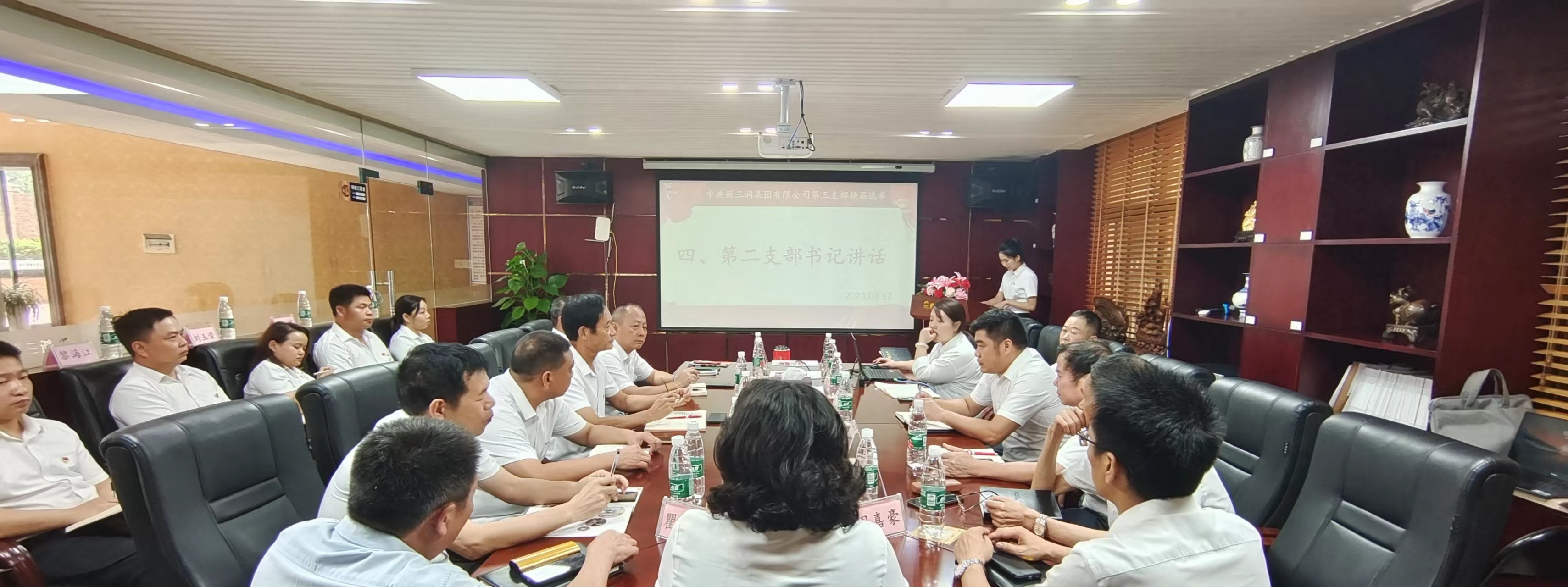 为进一步加强基层党组织建设,充分发挥党支部的战斗堡垒作用,增强党组织的创造力、凝聚力。2023年08月12日15:00时,中共新三润集团有限公司第二、三支部在集团醴陵分部第一会议室召开党员大会进行换届选举,中共新三润集团有限公司第二、三支部书记肖玲兰、周嘉豪等醴陵分部所属企业全体党员、预备党员、入党积极分子共计24人参加了此次会议,党员代表黎诗露主持会议。