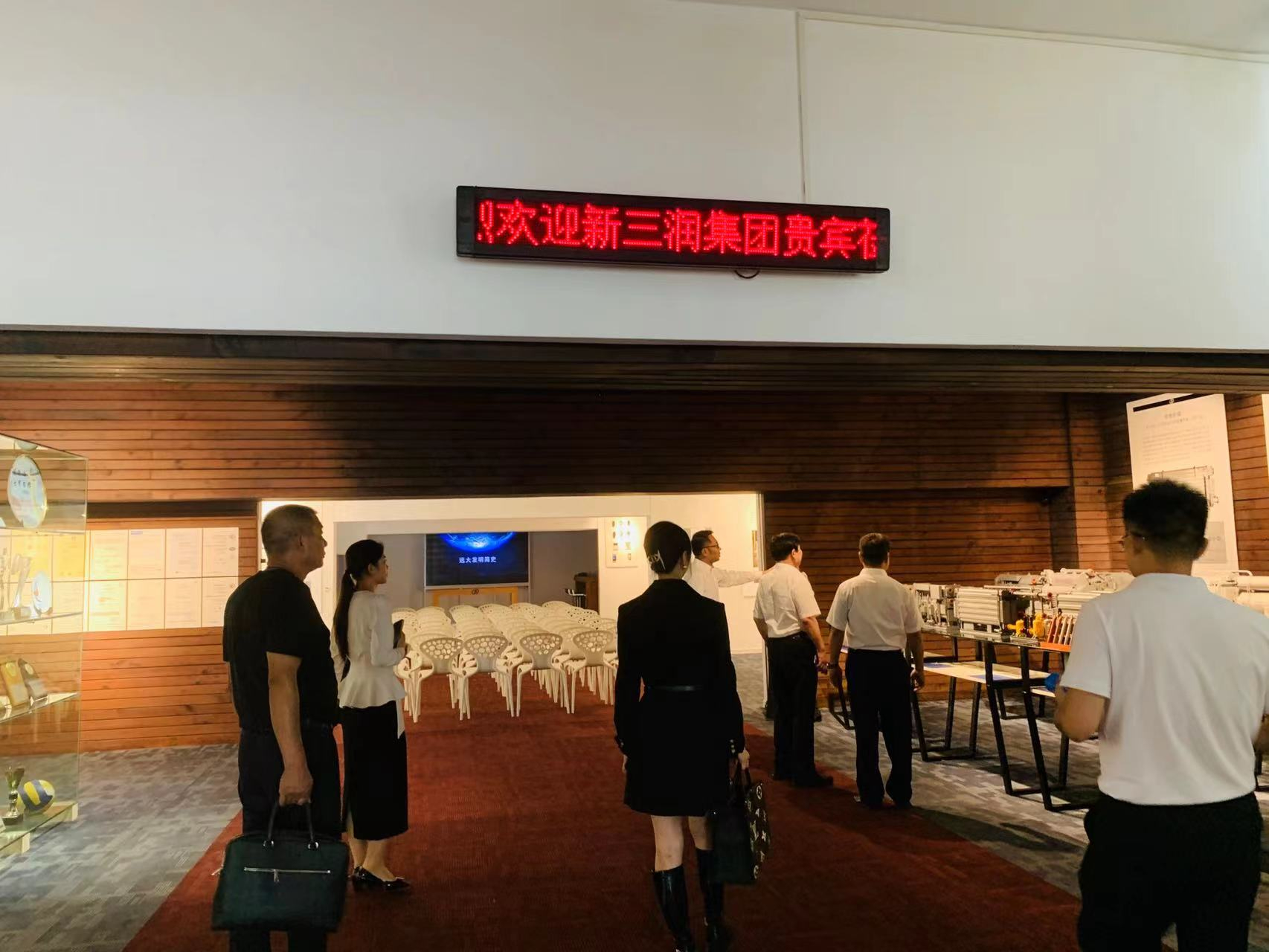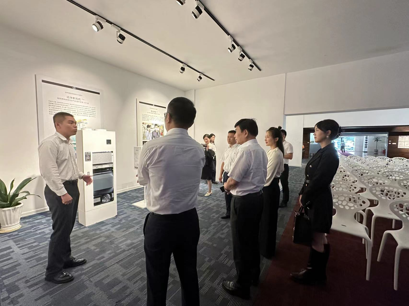 远大集团常务副总裁、远大空调公司总经理赵兴元等领导亲自陪同董事长一行参观远大城园区,首先落座展厅观看远大集团宣传片,并向董事长介绍远大集团企业文化、主营业务、科研成果和未来发展方向。