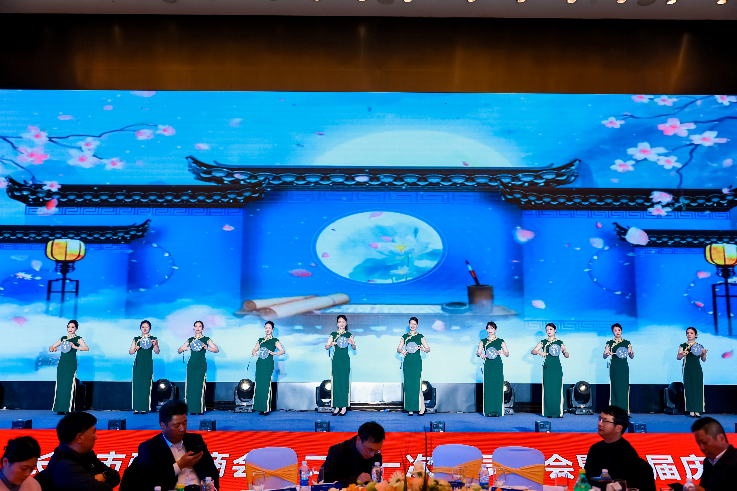 随后的文艺汇演精彩纷呈,全醴籍艺术家阵容惊艳亮相。张音悦的《万马奔腾》气势恢宏,李思宇的《我在醴陵等你》深情婉转,易鸿春与商会舞蹈太极俱乐部的《武当太极》意境悠远,陈圆圆、郭靖等歌手的表演赢得阵阵掌声。此外,新三润集团选送的旗袍秀典雅动人,充分展现了企业的文化底蕴和精神风貌。