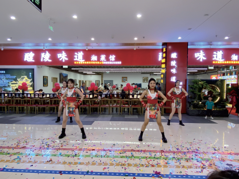 仪式在湖南知名舞团“吉祥如意”热闹的开场舞《吉祥颂》中拉开帷幕,喜庆的氛围让来往行人驻足。开场舞后,方圆荟湘江世纪城店店长李永康作为门店代表登台发言,湘醴餐饮总经理周嘉豪为本次开业仪式致辞。之后来自湖南卫视的签约魔术师江枫在店内表演魔术为仪式助兴,精彩纷呈的各类表演让现场食客目不暇接,博得阵阵掌声。随着剪彩仪式的顺利进行,在“吉祥如意”的返场热舞中,醴陵味道湘菜馆方圆荟湘江世纪城店正式开业。