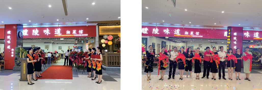 6月11日11时58分,醴陵味道湘菜馆方圆荟湘江世纪城店开业仪式于长沙方圆荟正式拉开帷幕。集团董事长李性虎,副总裁肖玲兰,助理总裁瞿孝军、周嘉豪出席仪式,总裁办及湘醴餐饮相关员工全程参与,仪式由潇湘星际影视传媒副总经理吴镭及集团醴陵分部秘书长黎诗露主持。