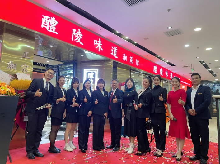 11月14日11时58分,醴陵味道湘菜馆开福万达店开业仪式于长沙开福万达广场4楼拉开帷幕。集团董事长李性虎、总裁办及湘醴餐饮相关员工全程参与,仪式由潇湘星际影视传媒副总经理吴镭及集团总裁办经理黄丽芳主持。