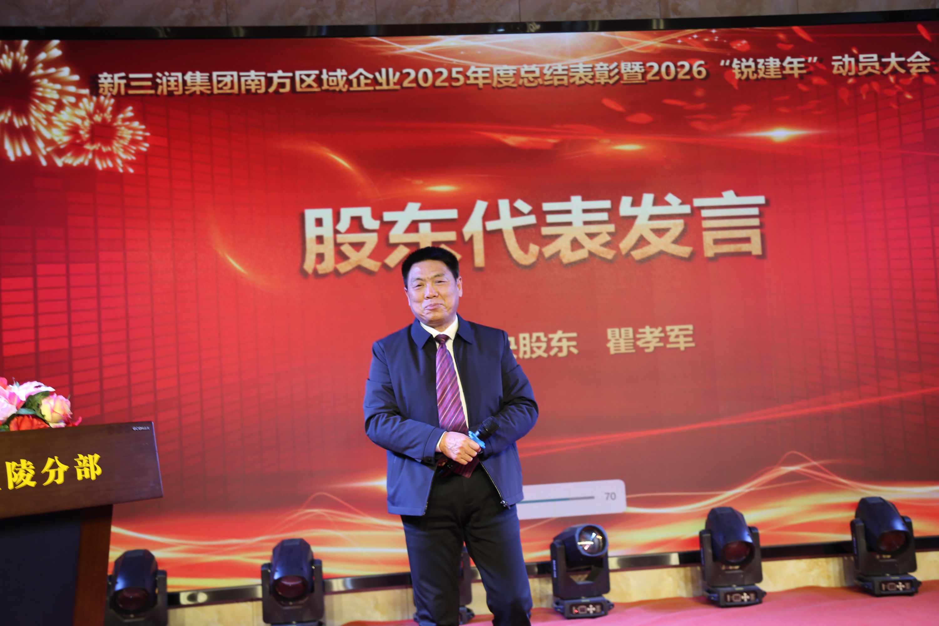 大会尾声,李性虎作重要讲话。他深情回望集团廿载风雨兼程:“在艰难的跋涉中,总能看到前方有一盏灯、一道光,那就是新三润人。”他宣布:春节后,集团将继续“走出去学习,引进来成长”的策略,让新三润的旗帜在更壮美辽阔的土地上高高飘扬。他强调,今日之新三润,是一个集团、多个公司,由数以十计的高管精英、成百上千的新三润员工以及数以亿计的投资,共同奔向百亿蓝图的宏伟目标。话音刚落,掌声经久不息。